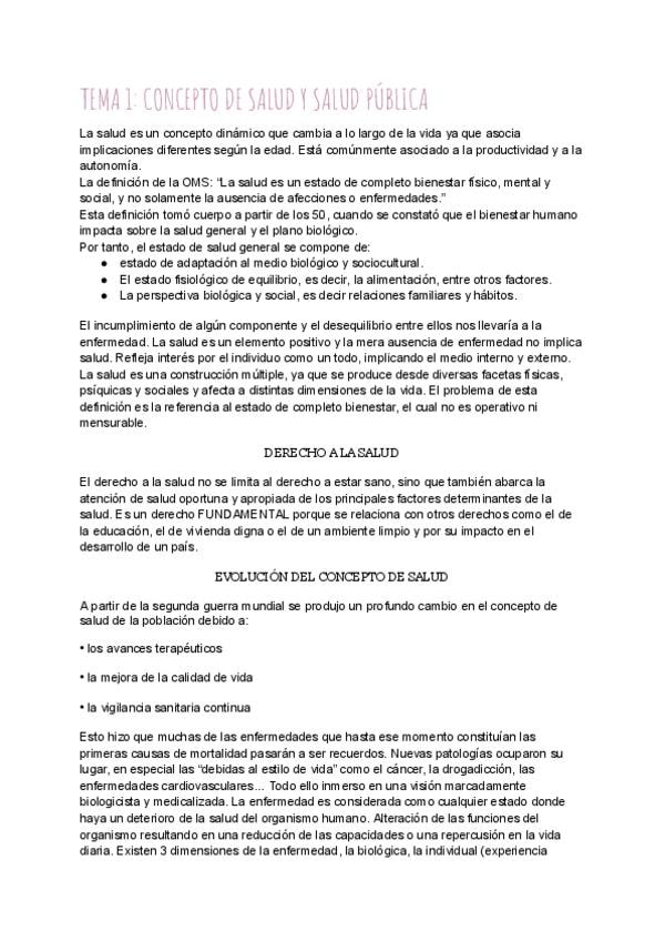 Tema 1 de INTRODUCCIÓN a la salud pública. Concepto de salud, salud pública y salud global.