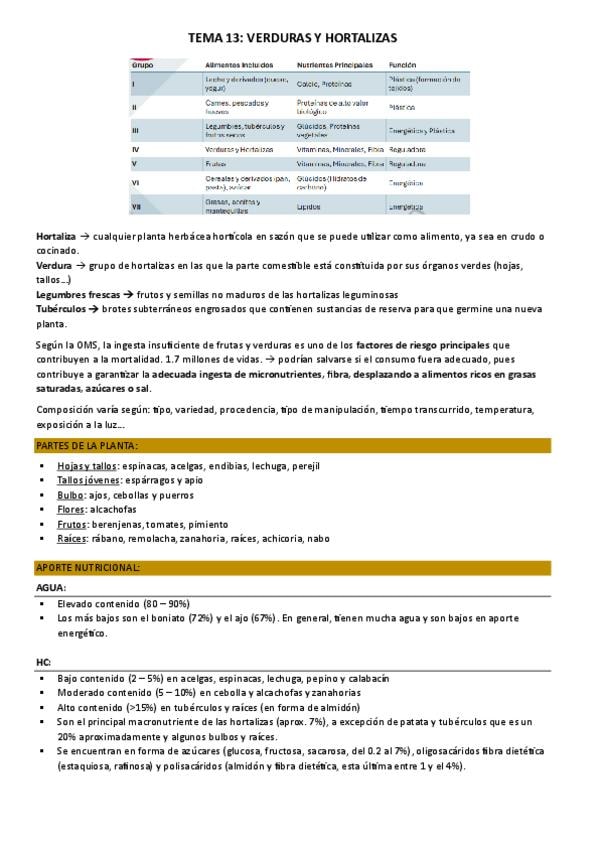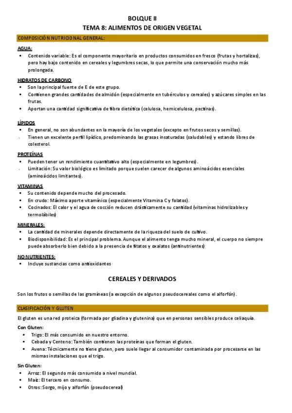 Tema 11.- Introducción. Alimentos de origen animal. Lácteos. Tema 12.- Carnes. Tema 13.- Pescados. Huevo. Tema 14.- Cereales. Legumbres. Tema 15.- Hortalizas. Frutas. Tema 16.- Grasas y aceites.