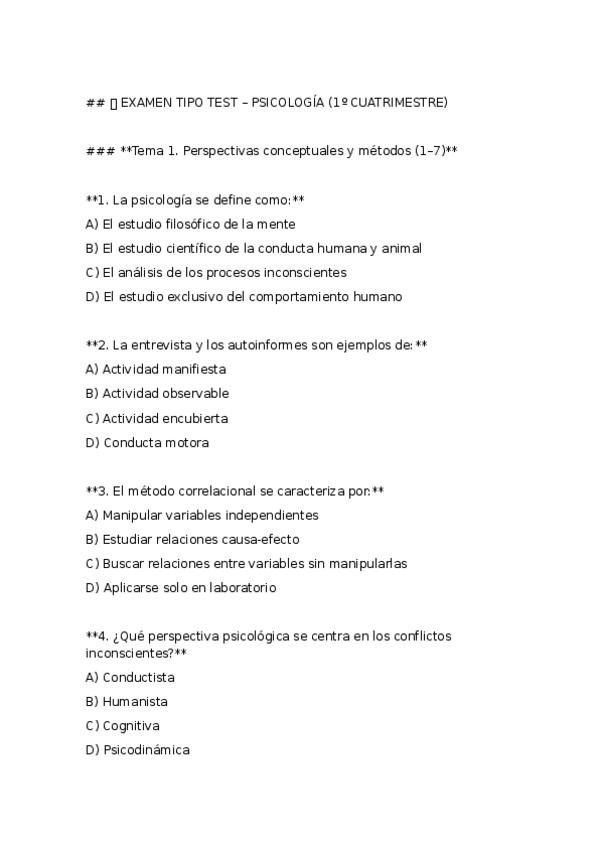 TEST PSICOLOGÍA para repasar