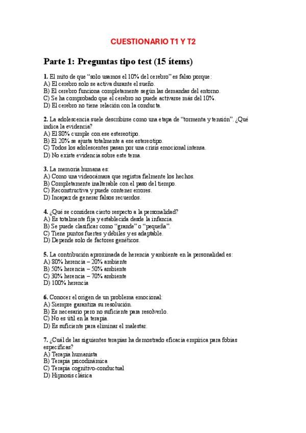 Cuestionarios para repasar