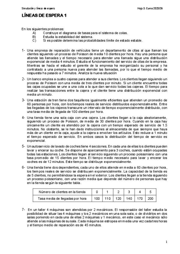 He publicado nuevos apuntes de 3º Simulación y Líneas de Espera: Tema 3 procesos de nacimiento y muerte y sistemas de línea de espera.pdf