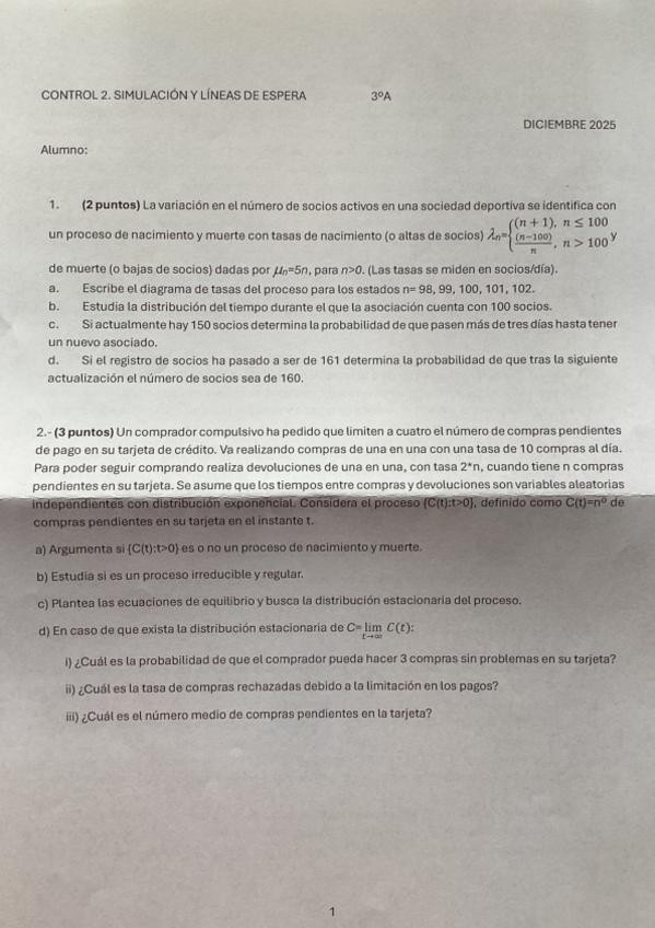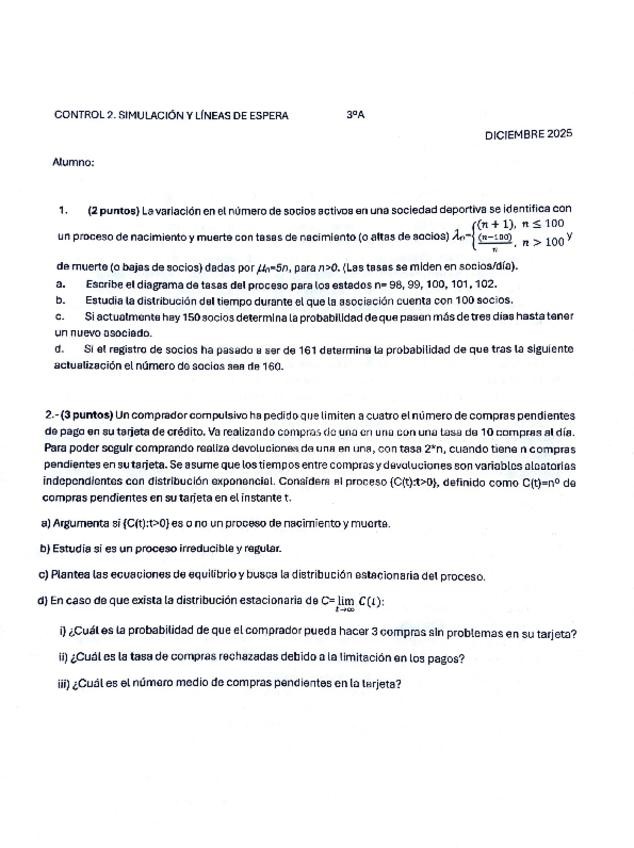 He publicado nuevos examenes de 3º Simulación y Líneas de Espera: 2do-control-25-26.pdf