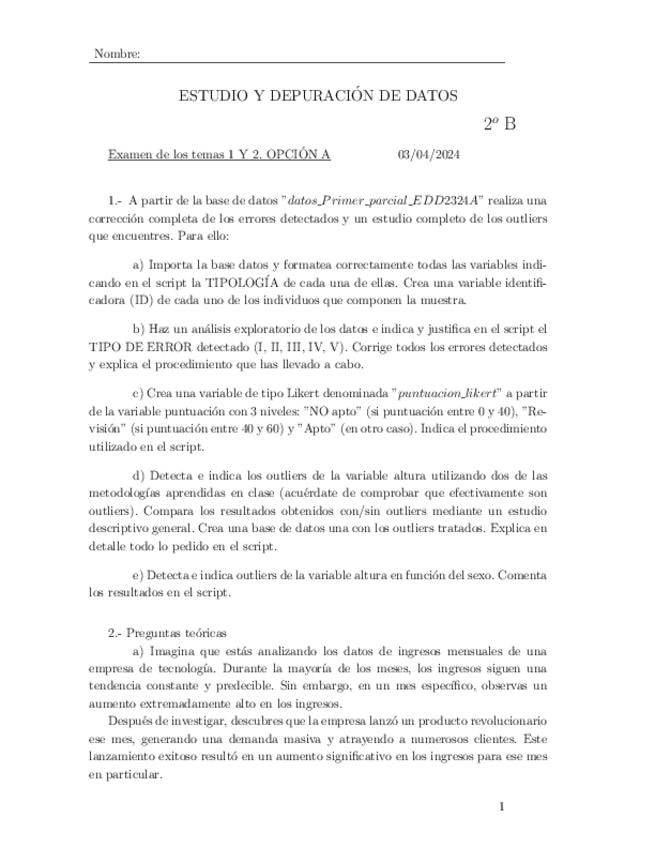 He publicado nuevos examenes de 2º Estudio y Depuración de Datos: Parcial-1.pdf