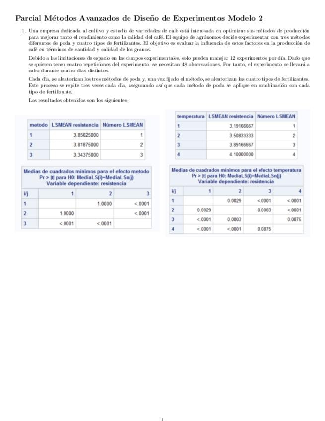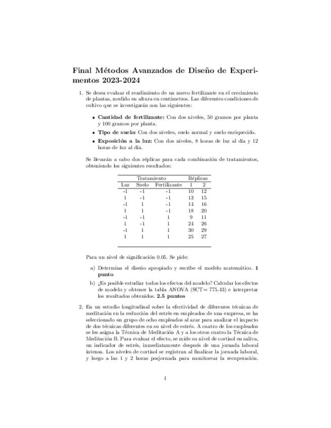 He publicado nuevos ejercicios de 3º Métodos Avanzados de Diseño de Experimentos: Ejercicios-tema-1.pdf
