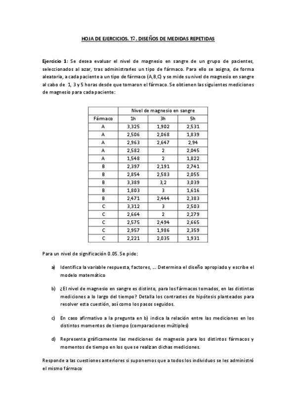 He publicado nuevos ejercicios de 3º Métodos Avanzados de Diseño de Experimentos: Hoja T2 Medidas Repetidas