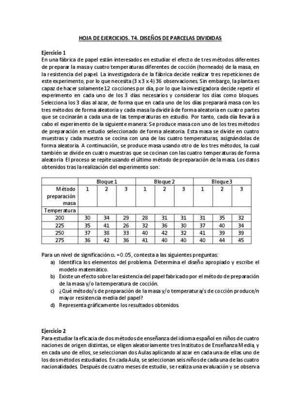 He publicado nuevos ejercicios de 3º Métodos Avanzados de Diseño de Experimentos: Hoja T3 ParcelasDivididas