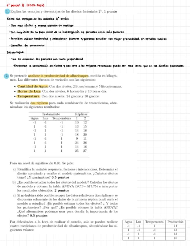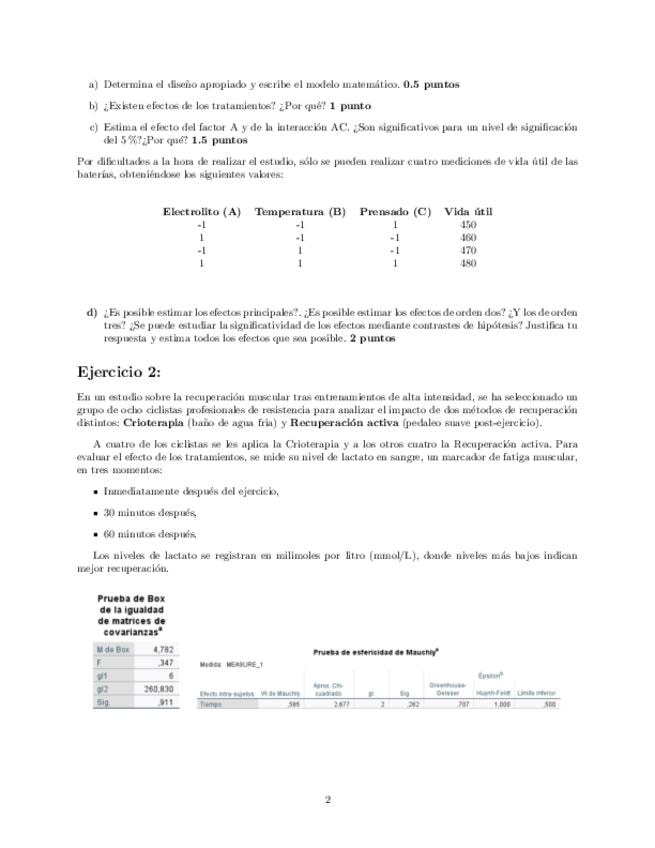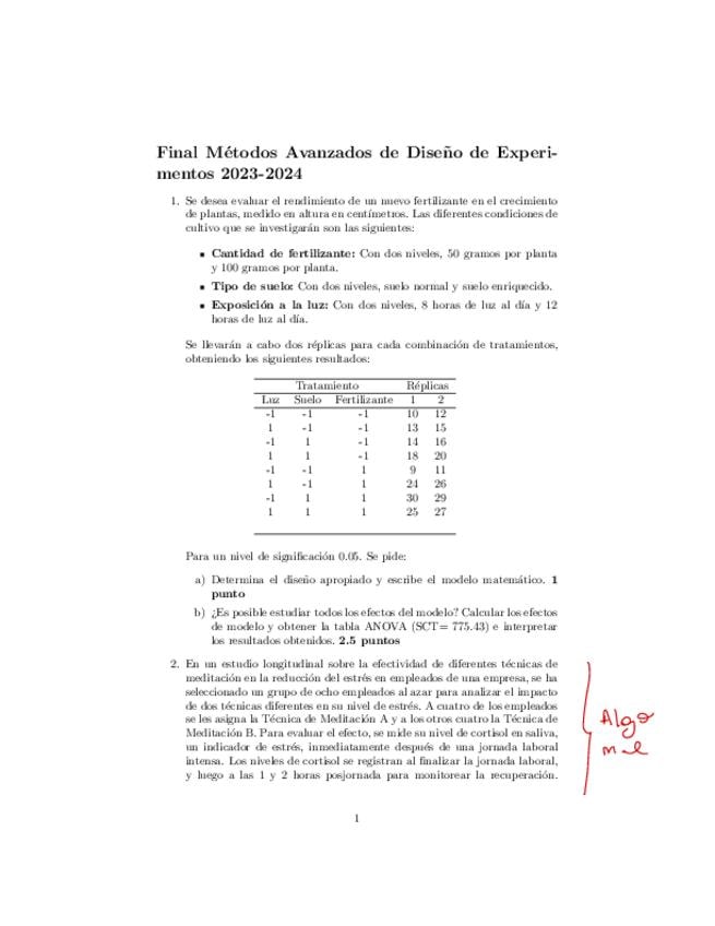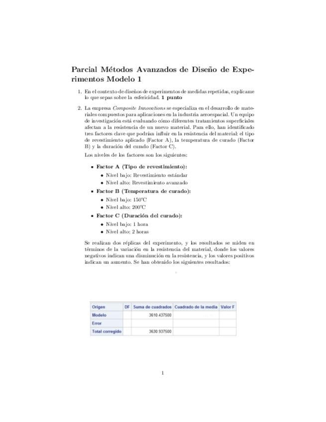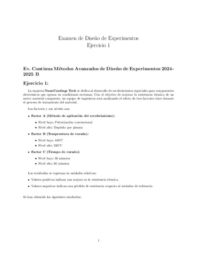 He publicado nuevos examenes de 3º Métodos Avanzados de Diseño de Experimentos: Examen-B-24-25.pdf