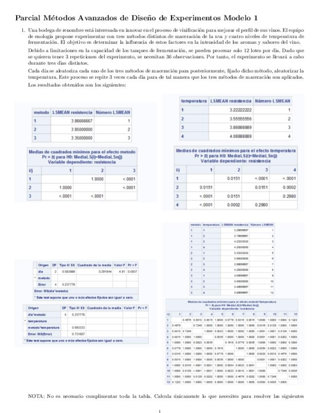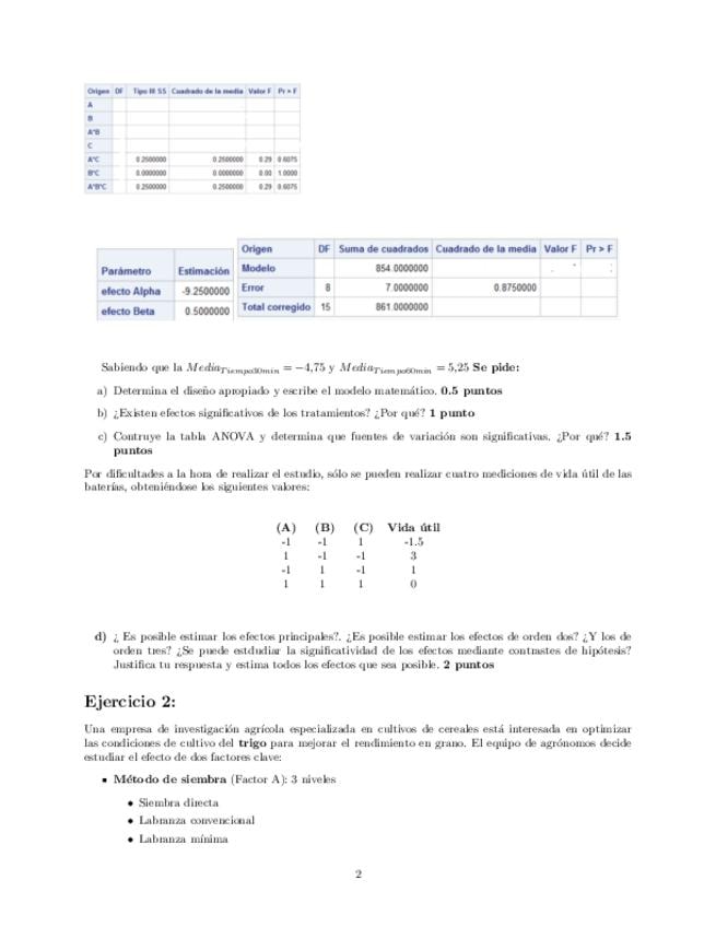He publicado nuevos examenes de 3º Métodos Avanzados de Diseño de Experimentos: Examen-A-24-25.pdf