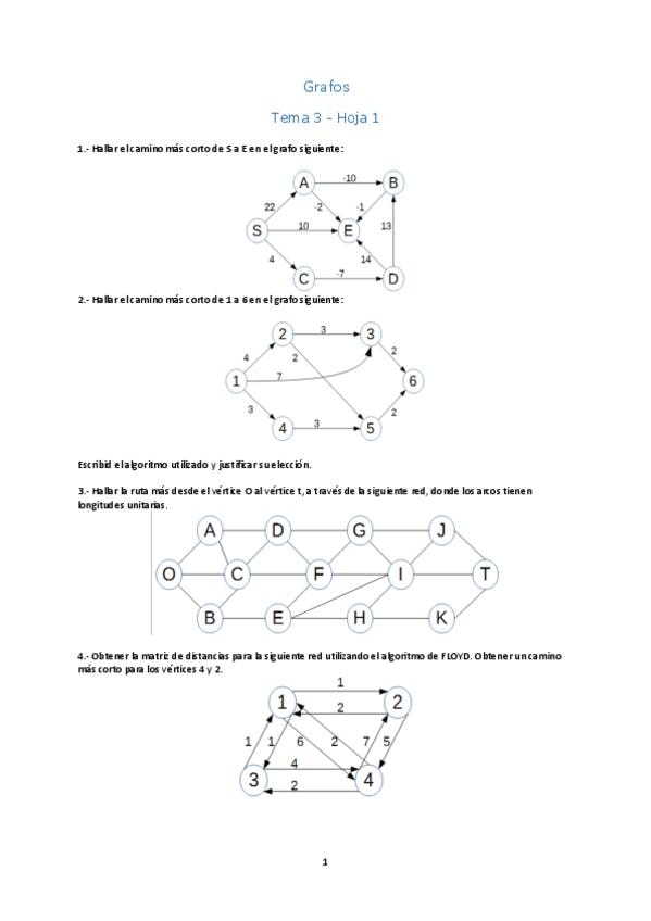 He publicado nuevos ejercicios de 3º Aplicaciones Estadísticas a la Industria: Hoja 3 de ejercicios camino mas corto.pdf
