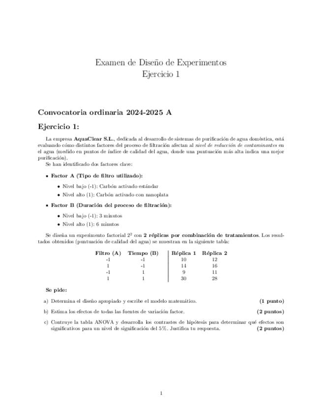 He publicado nuevos examenes de 3º Métodos Avanzados de Diseño de Experimentos: Examen-B-24-25.pdf