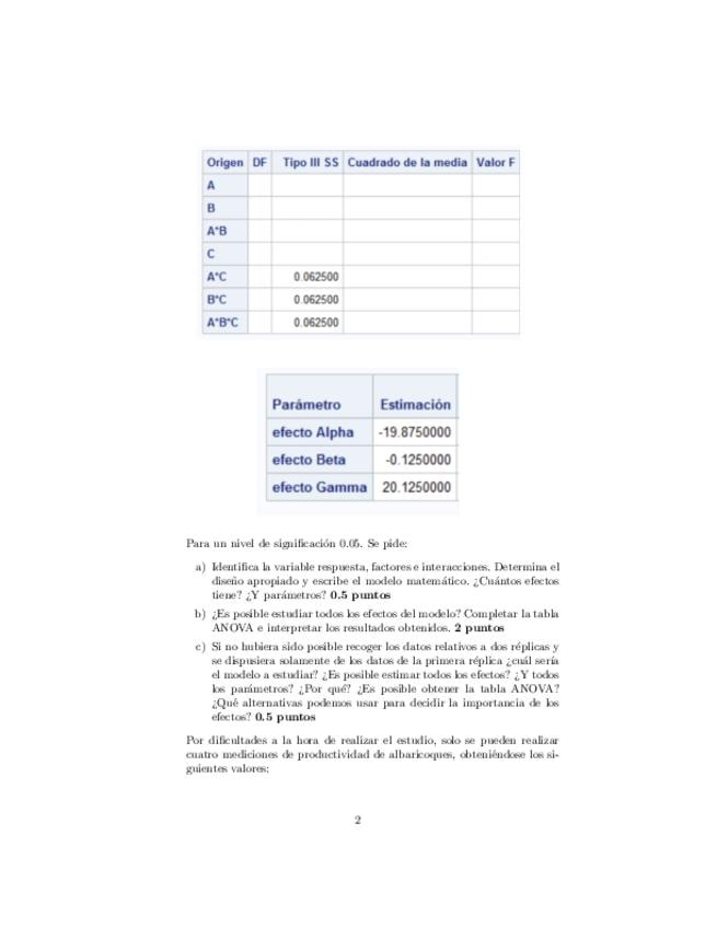 He publicado nuevos examenes de 3º Métodos Avanzados de Diseño de Experimentos: Examen-A-25-26.pdf