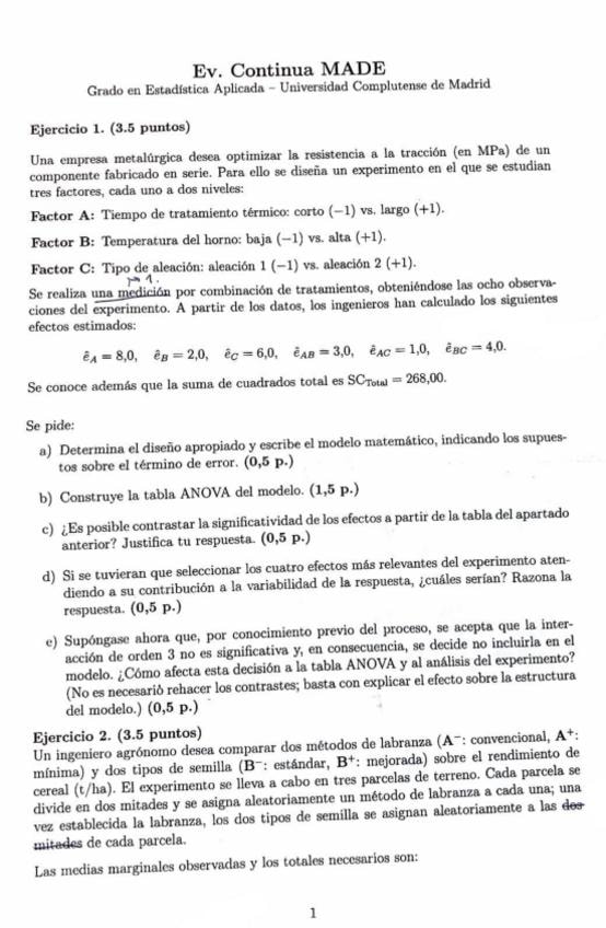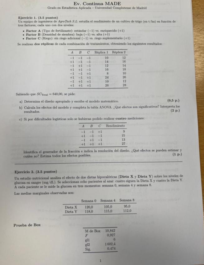He publicado nuevos examenes de 3º Métodos Avanzados de Diseño de Experimentos: Grupo-A-Final-continua-abril-2025.pdf