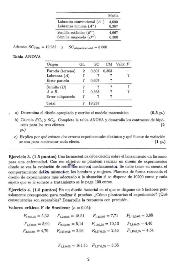 He publicado nuevos examenes de 3º Métodos Avanzados de Diseño de Experimentos: Examen-B-25-26.pdf