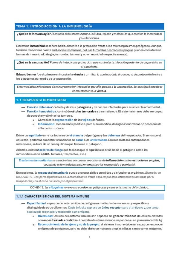 Apuntes completos inmuno contrastados con libros que versan sobre la materia. Curso: 2025-2026 Profesores: Francisco Arroyo, Antonio Prieto