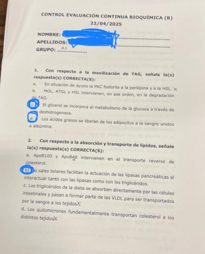 He publicado nuevos examenes de 2º Bioquímica: control-lipidos-24.25-corregido.pdf