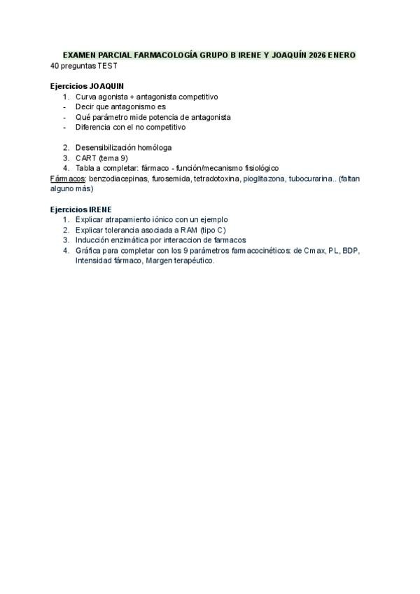He publicado nuevos examenes de 3º Farmacología General: EXAMEN-PARCIAL-FARMACOLOGIA-GRUPO-B-IRENE-Y-JOAQUIN-2026-ENERO.pdf