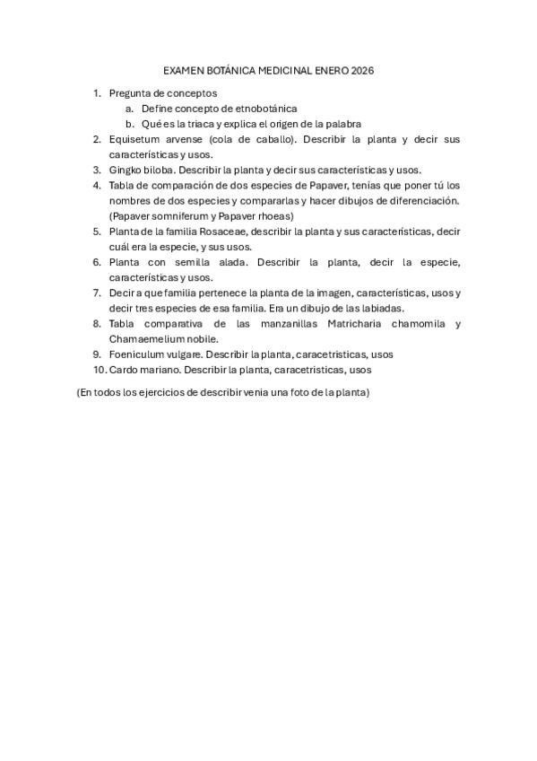 He publicado nuevos examenes de 5º Botánica Medicinal: EXAMEN-BOTANICA-MEDICINAL-2026.pdf