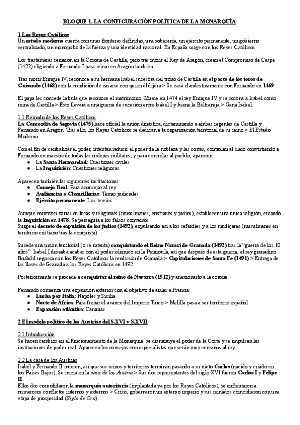 1. Los Reyes Católicos 2. El modelo político de los Austrias del siglo XVI y siglo XVII