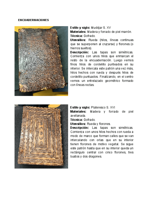 Tipos de encuadernaciones vistas en una visita a la Biblioteca Histórica Marqués de Valdecilla. Escrito tal cual lo desarrolló la profesora.
