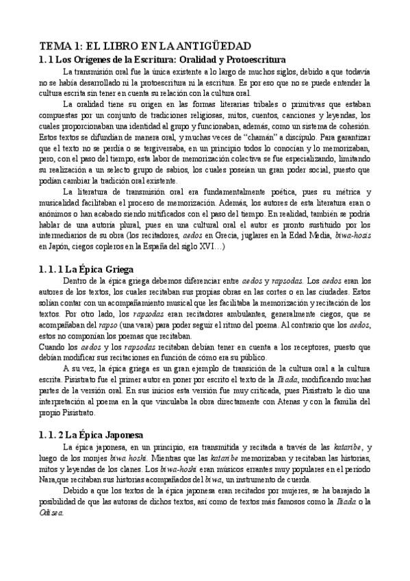Apuntes completos de Historia del libro y transmisión de los textos de hace un par de años