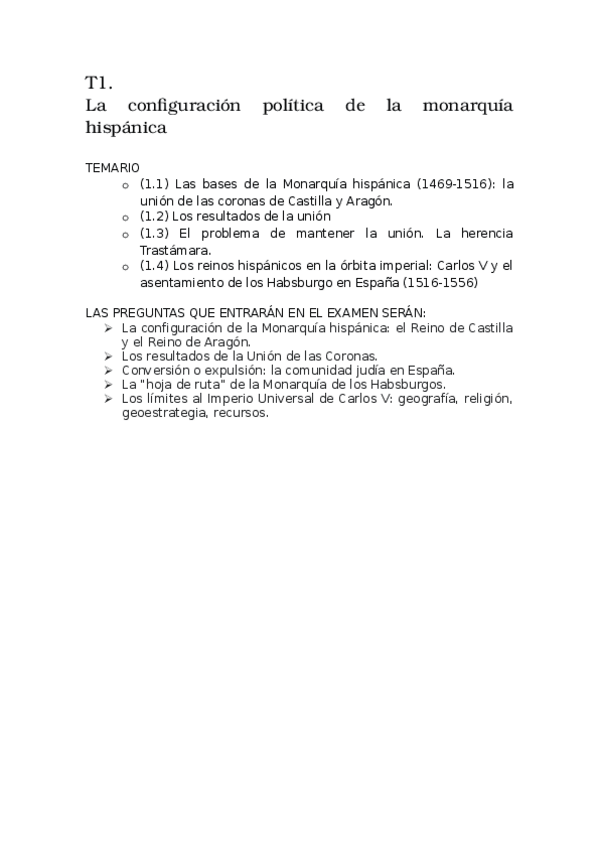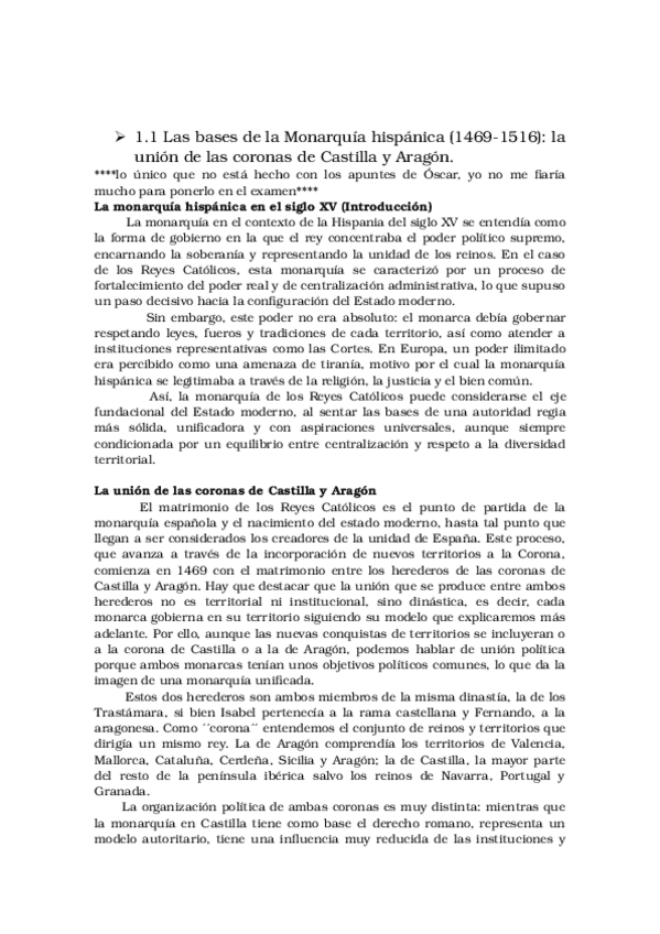 1. Los Reyes Católicos 2. El modelo político de los Austrias del siglo XVI y siglo XVII