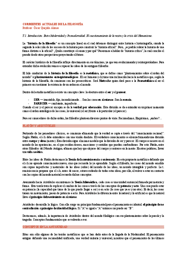 Apuntes del tema 1 de filosofía con todos los conceptos sueltos dichos por el profesor en clase más alguna adición personal que venía al cuento.