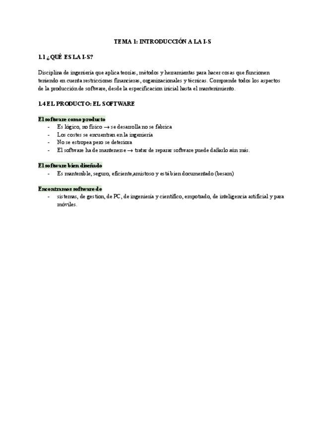 Apuntes de cara al examen sobre el tema 1 de Ingeniería de software