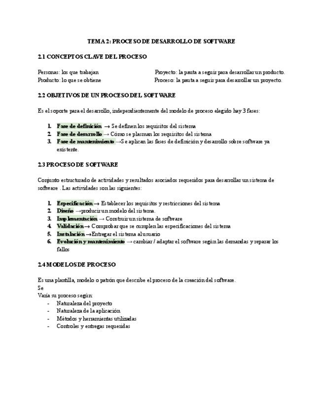 Apuntes de cara al examen sobre el tema 2 de Ingeniería de software