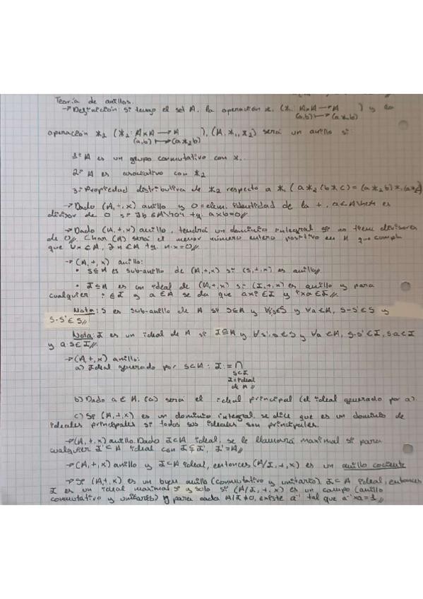 Apuntes de cara al examen sobre el tema de teoría de anillos de ampliación de matemáticas