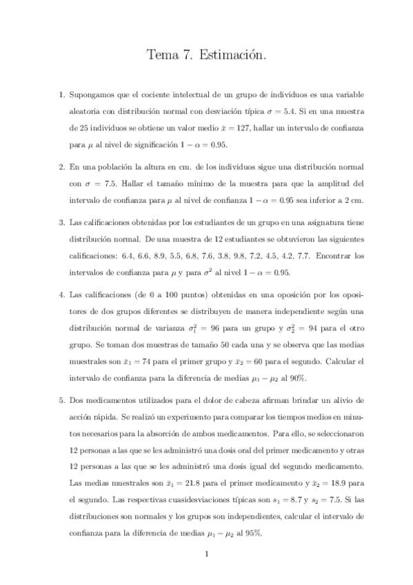 He publicado nuevos ejercicios de 2º Estadística Aplicada: Tema-7-ejercicios.pdf