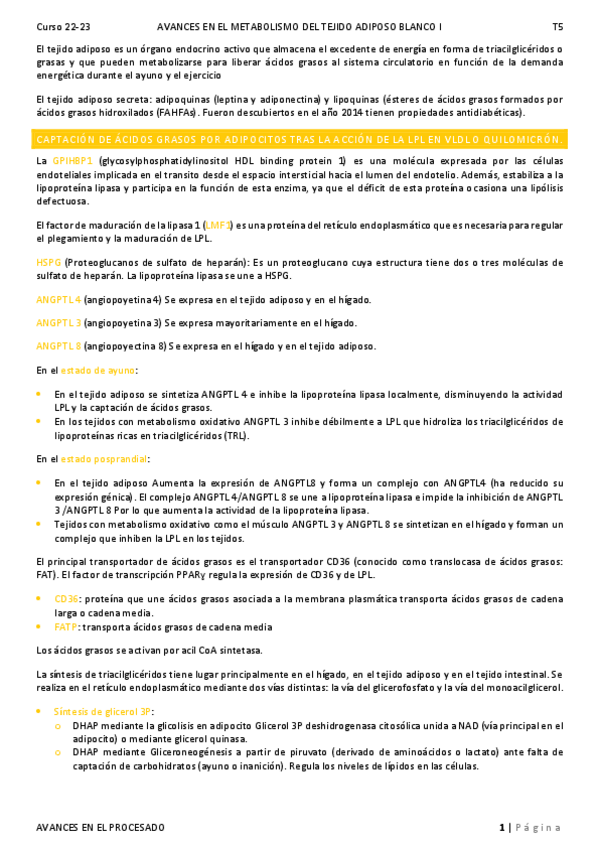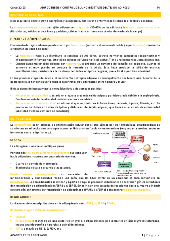 He publicado nuevos apuntes de 1º Avances en el conocimiento del tejido adiposo:Una nueva diana terapeutica: Apuntes 22-23