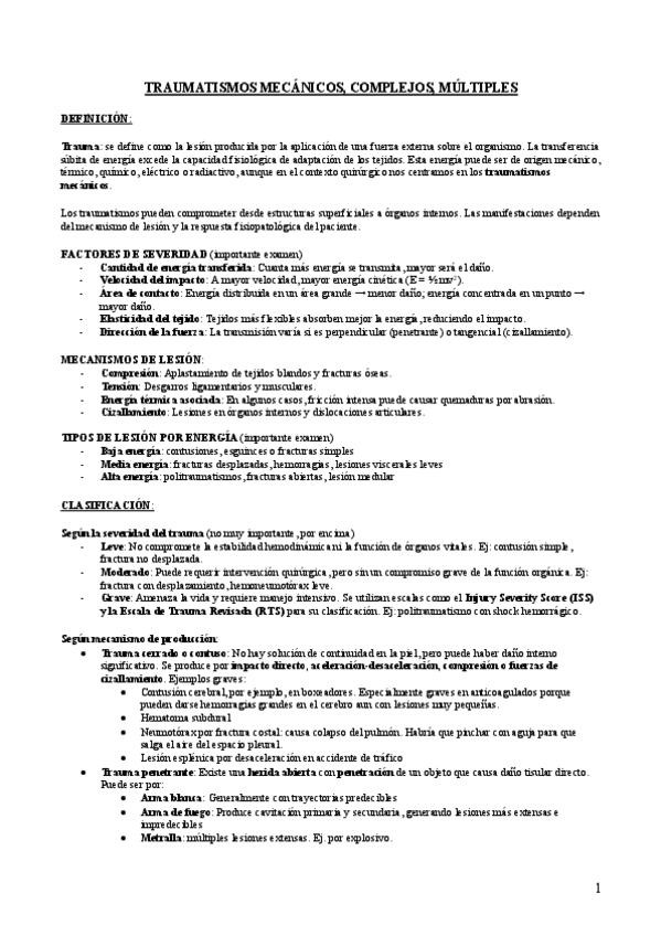 Apuntes de la clase de traumatismos mecánicos, complejos y múltiples. Curso 2024-2025