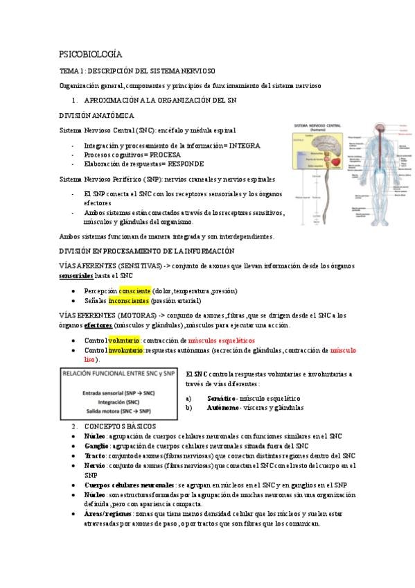 Resúmenes de los temas del 1 al 6 para el primer parcial de psicobiología II. SUBRAYADOS