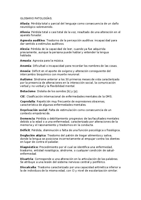He publicado nuevos practicas de 1º INTRODUCCIÓN A LA PATOLOGÍA DEL LENGUAJE: GLOSARIO-PATOLOGIAS.docx