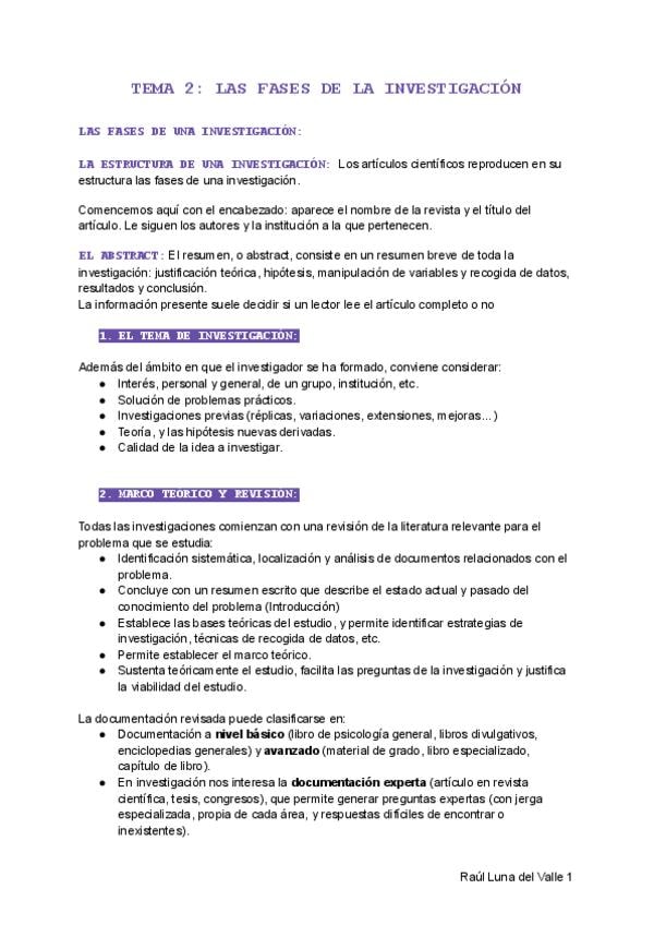 Apuntes tema 2, métodos y diseño de investigación. Raúl Luna del Valle
