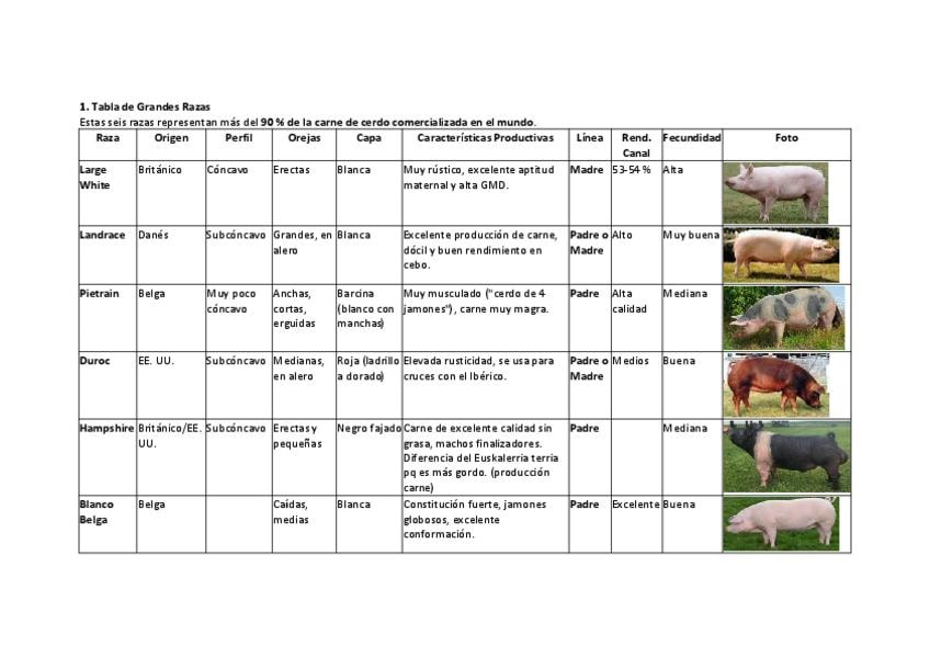 He publicado nuevos apuntes de 1º Bases de Producción Animal I: Etnología, Etología, Bienestar Animal e Higiene Veterinaria: Tabla-razas-cerdos.pdf