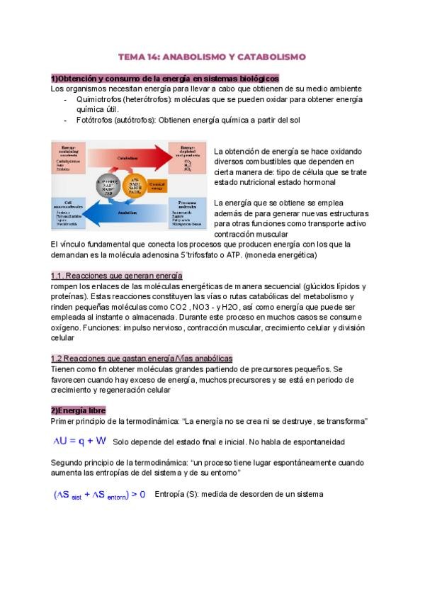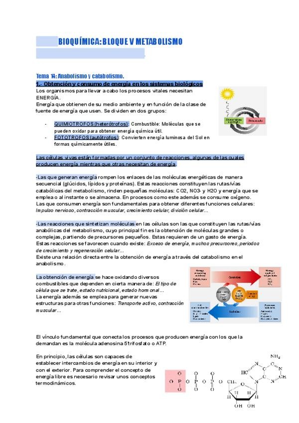 Bioquímica tema 14 (BLOQUE V; metabolismo), 9 páginas.
