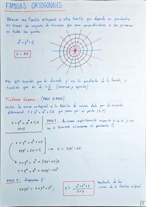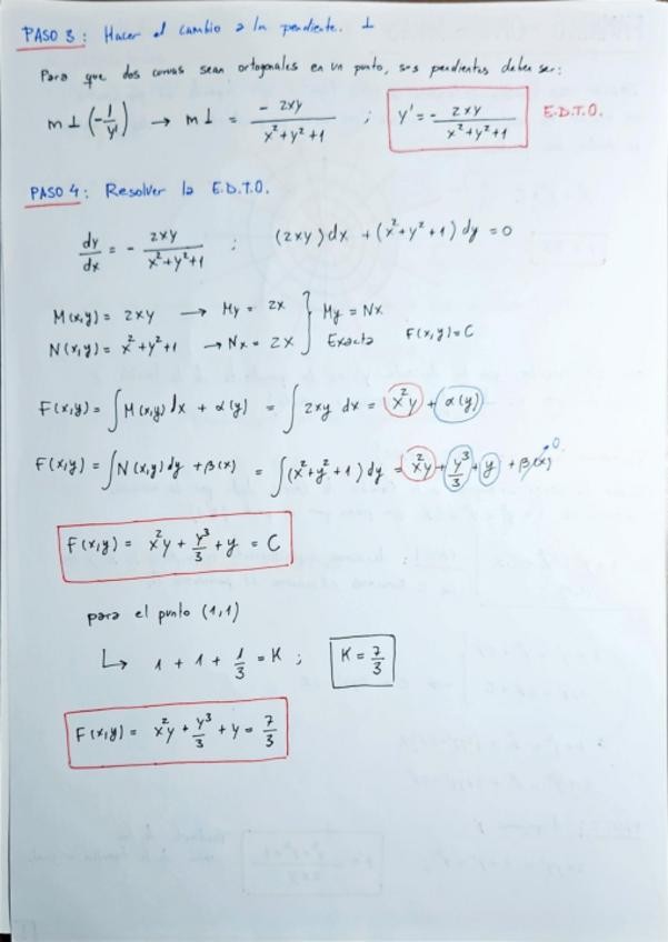Recopilación de problemas de trayectorias ortogonales y problemas de existencia y unicidad sacados de examen (ENERO/FEBRERO/SEPT) incluye examenes parciales resueltos de otros años