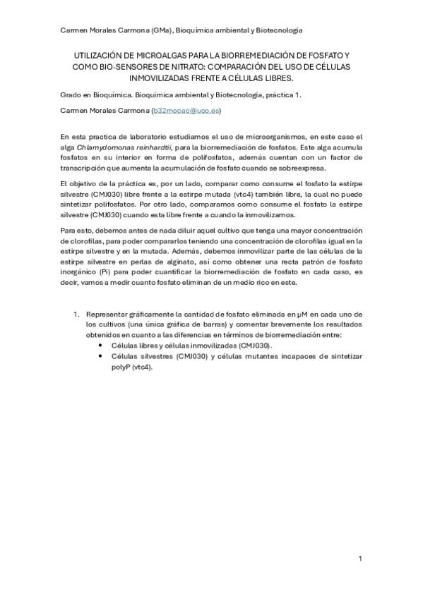 He publicado nuevos practicas de 3º Bioquímica Ambiental y Biotecnología: Memorias prácticas