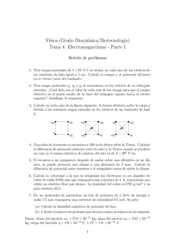 He publicado nuevos ejercicios de 1º Física: Boletines 1-4