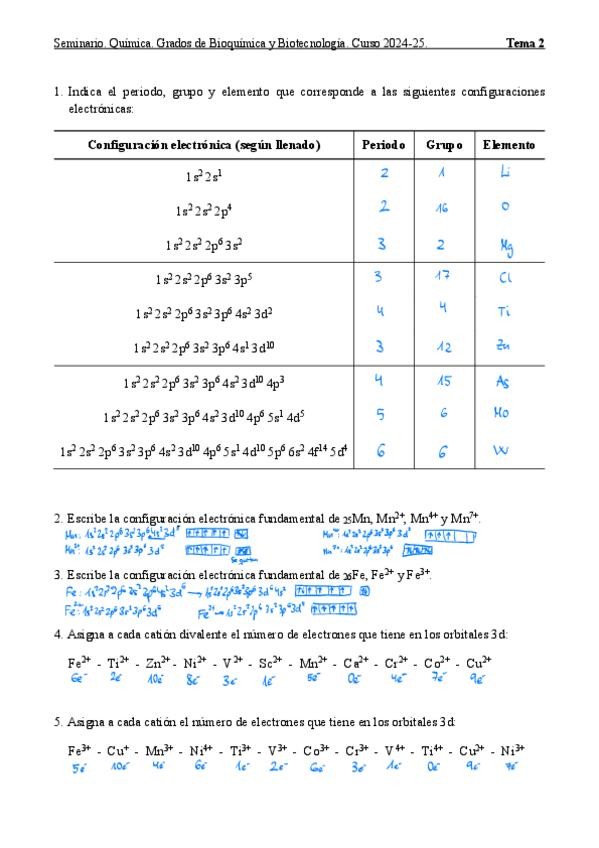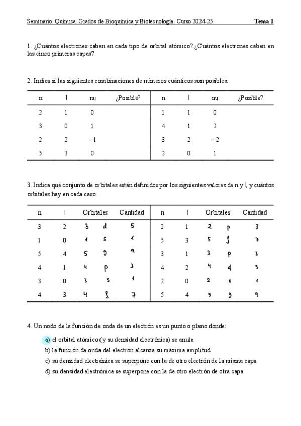 He publicado nuevos ejercicios de 1º Química: Seminarios QI