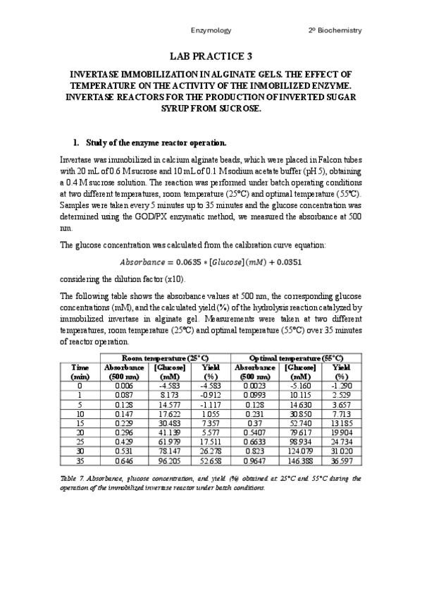 He publicado nuevos practicas de 2º Enzimología: Lab Practices Report
