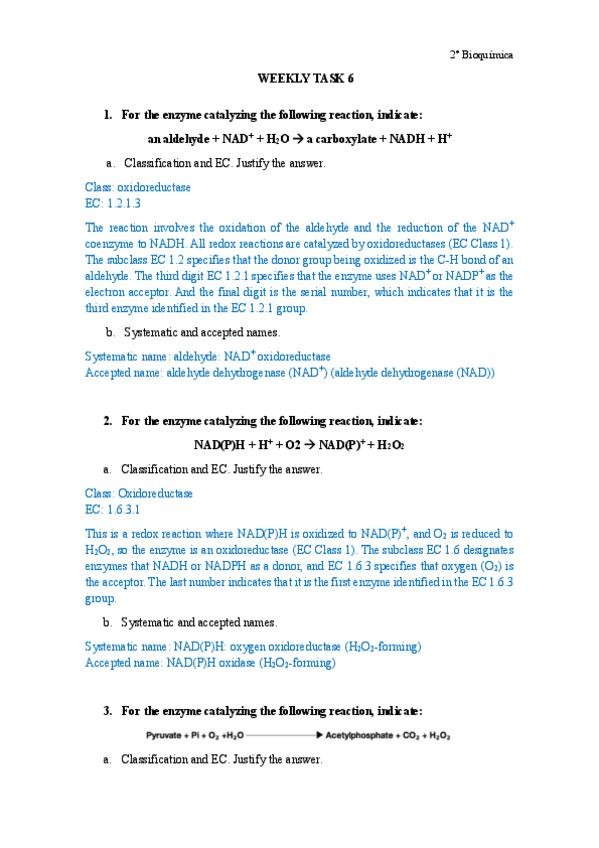 He publicado nuevos ejercicios de 2º Enzimología: Weekly Tasks
