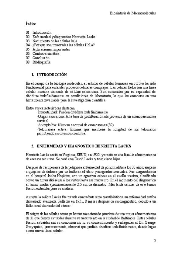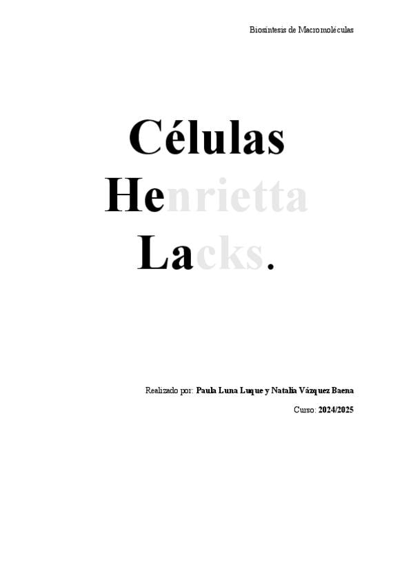 He publicado nuevos ejercicios de 2º Biosíntesis de Macromoléculas: Celulas-Henrietta-Lacks.pdf