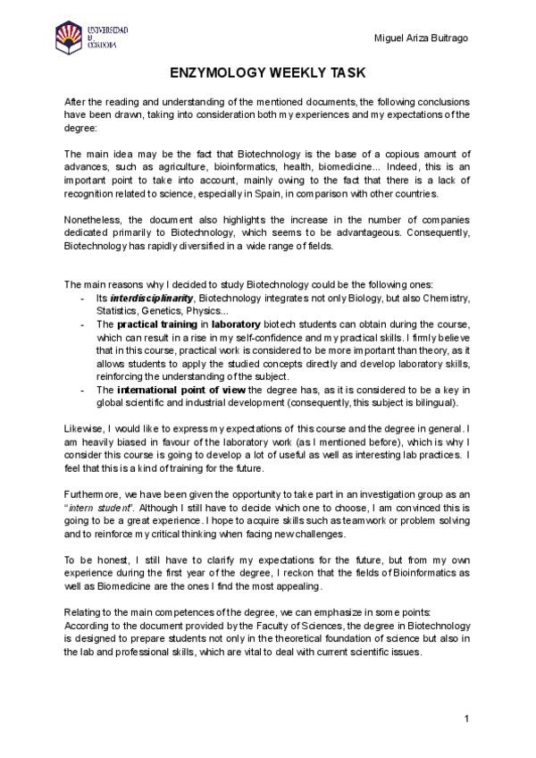 He publicado nuevos trabajos de 2º Enzimología: Weekly Tasks