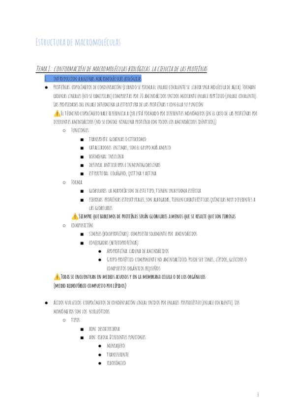 He publicado nuevos apuntes de 2º Estructura de Macromoléculas: apuntes por bloques