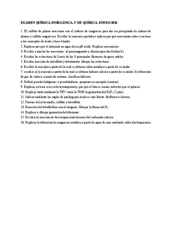 He publicado nuevos examenes de 2º Química Inorgánica: Examen-Enero-2026.pdf