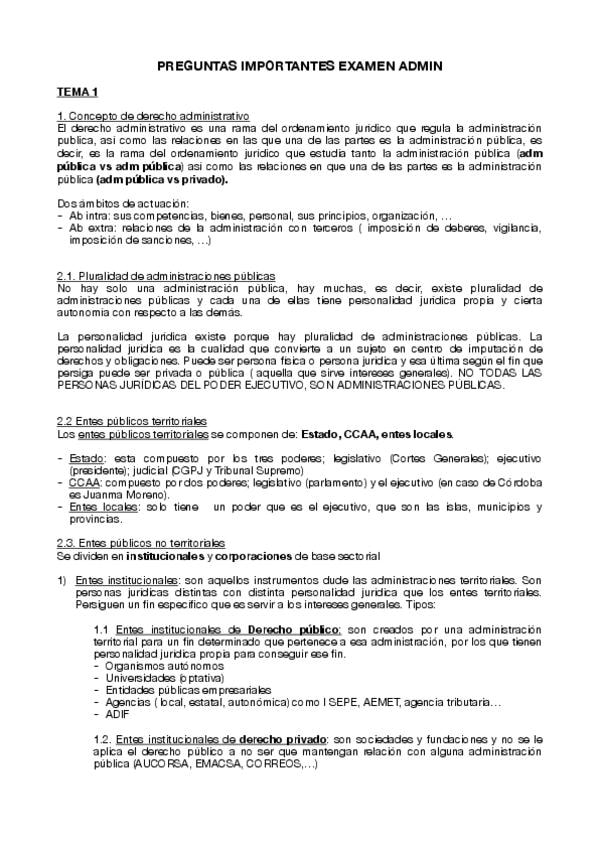 Preguntas más importantes de cada tema del temario completa del examen