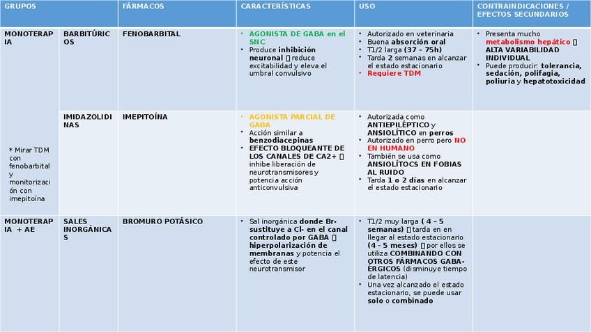 Tablas de fármacos con toda la información necesaria para sacar buena nota