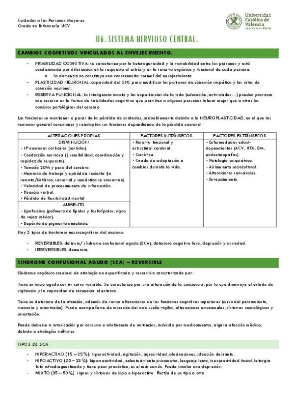 APUNTES CUIDADOS DEL MAYOR TEMA 6 SISTEMA NERVIOSO CENTRAL PARTE 1, resumido y con fotos